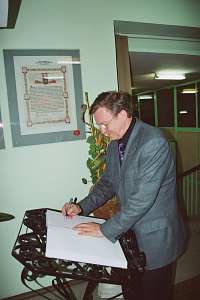 Na zdjęciu od lewej: dyrektor Sportowej Szkoły Podstawowej nr 15 w Raciborzu Andrzej Ciesielski, prof. Rein Haljand, nauczyciel-trener pływania Ewa Sienkiewicz, wiceprezes PZP Wojciech Nazarko, Wicemistrz Europy w pływaniu stylem klasycznym-absolwent SP15 w Raciborzu Arkadiusz Paczyński, nauczyciele-trenerzy: E. Rudzka-Bałys, I. Noga, I. Kiersztyn, G. Badowska, J. Lukoszek.