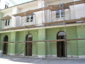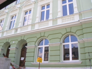 Na chwilę przeraził fakt, że odnowieniu podlega tylko frontowa część gmachu. Na szczęście był to tylko chwilowy zastój w pracy. Renowacji doczekała się także ściana boczna, która wychodzi na podwórze. Dawniej stał przed nią budynek, który został zburzony w latach 60 – tych. Ale w tej chwili ta część budynku jest widoczna i mocno wyeksponowana, szczególnie dla wjeżdżających do miasta z kierunku Opola, czy Głubczyc.