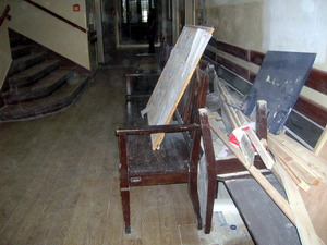 Patrząc na nowe błyszczące kafle, aż żal, że zastąpiły one piękną XIX – wieczną drewnianą podłogę. Tak, to prawda ale ona piękna… była. – twierdzi prezes. – Zniszczono ją w czasach komunistycznych, zalewając ją różnego rodzaju środkami czyszczącymi.