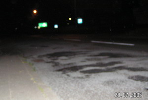 Nierówności nawierzchni zalano masą asfaltową smołopodobną, która została następnie zasypana posypką kamienną. Na odcinku kilkuset metrów kierowcy wpadali na cały pas zasypany tymże żwirem, który bombardował podwozie samochodu, zaklejał smołą opony, uszkadzał lakier. Pozostają na nim ślady nie do usunięcia.