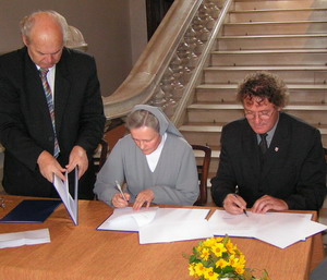 W ubiegły piątek w Pogrzebieniu (12. sierpnia) podpisana została umowa na prowadzenie przez Siostry Salezjanki Pogotowia Opiekuńczego. Ze strony Starostwa Powiatowego podpis złożył starosta Henryk Siedlaczek, zaś Zgromadzenie Córek Maryi Wspomożycielki (znane popularnie jako Sióstr Salezjanek) reprezentowała Przełożona – Siostra Elżbieta Bortkowska. Moment podpisania umowy poprzedziło przemówienie Jerzego Wziontka, który podkreślił znaczenie tego ośrodka dla powiatu, na którego utworzenie czekano siedem lat. Na sali, jak podkreślił Jerzy Wziontek, obecne były osoby, dzięki których staraniom ośrodek powstał. Szczególne zasługi dla tej inicjatywy włożyli: przełożona klasztoru, Siostra Krystyna Arndt, radna powiatu Małgorzata Rother-Burek, radna gminy Krystyna Klimaszewska, dyrektor ośrodka wychowawczego w Kuźni Raciborskiej, Julian Zieliński, ze strony Urzędu Powiatowego zaś – Aleksander Kasprzak i Henryk Hildebrandt. Siostra Elżbieta Bortkowska w słowach kierowanych do zebranych podkreśliła rolę charyzmatu założyciela Zgromadzenia Jana Bosko oraz Matki Marii Dominiki Mazzarello – pierwszej przełożonej generalnej sióstr.