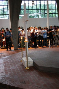 zawiera krzyż – symbol Chrystusa, gwiazdę, oznakę Bożego przewodnictwa. Dwie wieże symbolizują kolońską katedrę, poziomy łuk to łódź (kościół), kolor niebieski nawiązuje do rzeki Ren oraz do wód chrztu świętego.