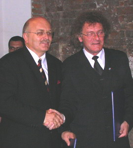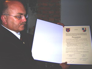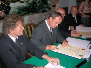 Mimo, iż wczorajsze popołudnie dla radnych obu powiatów było pracowite (sesje Rady Powiatu) jednak to nie przeszkodziło przybyć im licznie do Rud. Dokument o współpracy podpisali starostowie i przewodniczący rad: ze strony Powiatu Kędzierzyńsko – Kozielskiego – starosta Józef Gisman i przewodniczący rady Teodor Bek, zaś z naszej – starosta Henryk Siedlaczek i przewodniczący rady Roman Głowski. Po podpisaniu obie strony uścisnęły sobie dłonie i wymieniły się herbami i flagami powiatów.