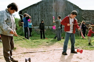 Poza licznymi atrakcjami tradycyjnymi – takimi jak wycieczki, zwiedzanie zabytków, gry sportowo – przygodowe, wycieczki górskie, program obozów obejmował uczestnictwo w 3 – 4 warsztatach dziennie. Nieustającym zainteresowaniem cieszą się tańce szkockie i irlandzkie prowadzone przez Roberta Witosławskiego z Gdyni i warsztaty teatralne z Grażyną Tabor. Co roku wprowadzamy jednak nowe elementy – tegoroczną nowością były warsztaty plastyczne prowadzone przez Kingę Dzięcielewską – absolwentkę poznańskiej ASP, ćwiczenia Tai Chi oraz warsztaty cyrkowe z elementami fire show (taniec ognia), którego uczyli nas artyści z cyrku HECA. Było też rzeźbienie w glinie, budowa olbrzymich totemów – a nawet budowa drewnianej, aczkolwiek oświetlonej „wieży telewizyjnej” – czym pokierowali artyści z Niemiec. Po rocznej przerwie wróciliśmy też do warsztatów bębniarskich i gry na australijskim didgeridoo, którymi zajął się Grzegorz Czaja – muzyk z Leszczyn. Z radością powitaliśmy też w naszym gronie Anię Jegerską, która pomimo obaw i doświadczenia w pracy ze starszą młodzieżą, okazała się także świetnym instruktorem dla najmłodszych. Udało jej się przeprowadzić nie tylko warsztaty teatralne i elementy dramy – uczyła dzieci nawet trudnych technik głosowych i pieśni ukraińskich – dodaje Dawid, który co roku osobiście dobiera kadrę i zaprasza na obozy dobrych i sprawdzonych instruktorów.