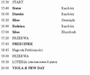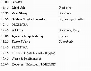 W sobotę 15 października w RCK przegląd rozpocznie się o godzinie 16.00, w niedzielę, o godzinie 15.30. Wśród gwiazd: Teatr A – Musical „TOBIASZ”, zespół Przecinek i VIOLA & NEW DAY.
