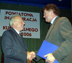 W tamtym roku zorganizowana w pękającej w szwach sali widowiskowej „Strzechy”, połączona z jubileuszem zespołu „Miraż”. Wczoraj zdecydowanie bardziej kameralnie, w sali MDK – Powiatowa Inauguracja Roku Kulturalnego.Jak co roku, jest to okazja do przyznania nagród dla animatorów kultury naszej ziemi. Spośród 14 kandydatur, powołana decyzją starosty Komisja, wyłoniła trzech laureatów: Teresa Okaj, nauczyciel w Zespole Szkół Ekonomicznych w Raciborzu, Blasius Hanczuch, założyciel i kierownik muzeum regionalnego w Bieńkowicach oraz dr Jan Duda, znany raciborski przyrodnik. Niestety na uroczystości zabrakło przebywającego za granicą, Jana Dudy.