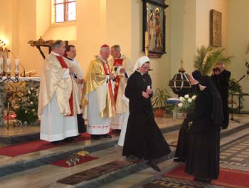 Na łamach „Brzeskiego Parafianina” wydanego z okazji tych uroczystości ukazał się artykuł S.M.Alodii Lelek, który przybliża postać siostry z Brzezia: O mojej Współsiostrze, S. M. Dulcissimie Hoffmann napisano już wiele; książki, broszury, artykuły itd. Moim zadaniem ma być uwypuklenie niektórych aspektów łączących ją ze św. Teresą od Dzieciątka Jezus. Uważam, że to zadanie jest trudne, ale na ile potrafię, postaram się w części to zrobić. Każdego człowieka coś łączy, czy dzieli z drugim człowiekiem. Myślę, że też tak było w życiu tych dwóch młodych osób. Może najpierw kilka słów o tym, co je różniło. Jedna Francuzka, urodzona w Alencon, druga Ślązaczka urodzona w Świętochłowicach – Zgodzie. Odległość domów rodzinnych setki kilometrów. Można powiedzieć, że Teresa urodziła się w dość zamożnej rodzinie, w pięknym domu, natomiast Helenka w ” szarym familoku”, w biednej robotniczej rodzinie. Teresa była ostatnim kochanym dzieckiem w rodzinie, chociaż Matka jej zmarła gdy miała 4 latka. Matkę w pełni zastąpiła naj starsza siostra Paulina. Mateczka darzyła swoja córeczkę wielkim uczuciem matczynym. Była również jej nauczycielką, która potrafiła także poprawiać i korygować. Natomiast nasza Helena (S. Dulcissima) owszem miała dom rodzinny, ale takiej czułości jak Teresa chyba nie zaznała. Szczególnie ojciec był człowiekiem o dobrym sercu, ale surowym. Jak sama S. Dulcissima się wyraziła” Już we wczesnym dzieciństwie moja wola była złamana”. W odróżnieniu od swojej” duchowej Siostry” S. Teresy, nasza bohaterka po stracie ojca w 9 roku życia nie odstępowała swojej mamy i starała się dzielić z nią wszystkie prace. Co natomiast łączyło te dwie osoby? Czy to przypadek, czy może przewidziane w Bożych planach, że Helenka przyszła na świat w 1910 roku, w roku rozpoczęcia procesu beatyfikacyjnego młodej Karmelitanki. Obydwie miały odwagę nie odmawiać Bogu niczego. Bóg potrzebuje takich ludzi i wziął je za słowo. Obydwie w 15 roku życia wyraziły wolę służenia Bogu w klasztorze. Oczywiście św. Teresa za pozwoleniem papieskim wstąpiła do Karmelu, a nasza Helenka ze względu na sprzeciw rodziców dopiero w 1927r. wstąpiła do Zgromadzenia Sióstr Maryi Niepokalanej we Wrocławiu. W jakich okolicznościach Helena zapoznała się ze św. Teresą? Dzieci, a wśród nich Helenka, przygotowujące się do pierwszej spowiedzi i Komunii świętej otrzymały polecenie katechety, aby ćwiczyły się w cnotach i budowały w swoich sercach duchowe kapliczki dla Jezusa.Helenka z wielką gorliwością zabrała się do dzieła, szczególnie walczyła z wadą nieposłuszeństwa. S. M. Dulcissima (Helena) od wczesnego dzieciństwa miała sny nadnaturalnego pochodzenia. Początkowo osoba ze snu nie była zidentyfikowana, ale bardzo zachęcała Helenkę do modlitwy i budowania duchowej kapliczki. Dopiero Helenka, gdy pracowała w polu znalazła medalik z podobizną zakonnicy, którą rozpoznała, że przychodzi do niej w snach. Jej podobiznę rozpoznała także w czasopiśmie religijnym i wtedy dowiedziała się, że jest to św. Teresa od Dzieciątka Jezus. Św. Teresa zaopiekowała się Helenką, a potem S. Dulcissimą do końca jej życia. Była dla niej przewodniczką i mistrzynią. Potrafiła ją pochwalić, ale także surowo upomnieć, a nawet ukarać. S. Dulcissima musiała ciężko pracować w swoim ogrodzie, to jest w duchowej kaplicy. Św. Teresa uczyła ją jak ma pracować i przeżywać swoją zakonność. Uważam jednak, że najbardziej łączyło je cierpienie, które przyjmowały z wielkim poddaniem się woli Bożej. Obydwie cierpienie nazywały podarunkiem z nieba i dziękowały za nie. Cierpiały z miłości i dla” Miłości”. Wszystko służyło dla nawrócenia biednych grzeszników, zbawienia dusz, za Kościół święty, Ojca Świętego, za kapłanów, za osoby zakonne. Mówiły, że Pan Bóg jest mało kochany na ziemi, dlatego przyjmowały Krzyż Jezusa, aby Jemu ulżyć. Stąd nazwa Siostry Dulcissimy ” Oblubienica Krzyża”. Uważam, że inną cechą, która je łączyła to zdolność przyjmowania upokorzeń i wykorzystywania ich na chwałę Bożą i zbawienie dusz. ” Cierpieć i umrzeć z miłości”. Innym rysem, który je łączył była tzw. ” Mała Droga”, droga dziecięctwa duchowego. Inspiratorką tej drogi była właśnie św. Teresa od Dzieciątka Jezus. Pragnęła, aby jej dzieło nadal było prowadzone na ziemi z zastępem” małych dusz”. Z biografii S. Dulcissimy możemy wnioskować, że została wybrana przez Jezusa i polecona św. Teresie jako jedna z pierwszych jej uczennic. Była ona wierną naśladowczynią swej Mistrzyni z nieba. Św. Teresa swoją uczennicę prowadziła tą drogą do świętości. Nie każdy może czynić rzeczy wielkie, ale czynić małe rzeczy, czy znosić codzienne krzyże i krzyżyki z uśmiechem i radością dla Jezusa, to już prawdziwy heroizm. Na małej drodze potrzebne jest bezgraniczne zaufanie Bogu, a motorem działania na niej jest miłość. Zalecały, aby się nie zniechęcać błędami, czy upadkami, bo dziecko często upada. Nie należy pomijać żadnej okazji, by dać Bogu dowód swej miłości. Chyba się nie pomylę, gdy zwrócę uwagę na jeszcze jeden szczegół. Otóż obydwie „Przyjaciółki” obiecały jeszcze za życia, że nie zapomną o swoich, gdy będąjuż w niebie. Słowa dotrzymują, gdy się je o coś poprosi. Obydwie poszły dojrzałe do Domu Ojca przeżywszy zaledwie 24 lata św. Teresa i 26 lat Sługa Boża S. M. Dulcissima. Nie daje mi spokoju inny szczegół, a mianowicie św. Teresa obiecała, że z nieba będzie zrzucać płatki róż na ziemię, czyli deszcz łask wyproszonych u Jezusa. To można było zobaczyć i doświadczyć podczas peregrynacji relikwiarza zjej szczątkami. Porywała wszystkich i nie zabrakło czerwonych róż. Podobne rzeczy dziej
