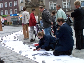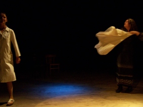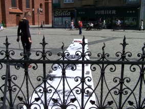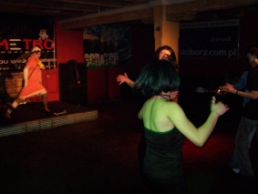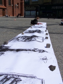 Planowany w piątek spektakl „Kroki” nie odbył się. Aktor – Julian Swift-Speed – nie dojechał. Jednak pozostała część teatralna festiwalu pokazała wysoki poziom. W sobotę widzieliśmy premierowy spektakl Teatru Tetraedr na podstawie powieści Aglaji Veteranyi. „Regał ostatnich tchnień” w reżyserii Grażyny Tabor to gorzka opowieść o samotnym umieraniu i związkach życia ze śmiercią. Na trzASKoffie dwa przedstawienia pokazał Teatr Realistyczny ze Skierniewic. Obsypywana nagrodami grupa została okrzyknięta teatrem współczesnego sumienia i neoanarchistycznym zespołem. W sobotniej „Tosamości” twórcy pytali o sens różnienia się w dobie fastfoodu i władzy pop-kultury. „Trylogia drobiowa” była autoironicznym komentarzem do współczesnej alternatywy teatralnej. Oba wyreżyserował Robek Paluchosky. Bardzo zdumiał publiczność ostatni spektakl festiwalu – „Niedoistnienie”. Był to występ tańca butoh w wykonaniu Sylwii Hanff. Tancerka Teatru Limen zahipnotyzowała publiczność pokazując „taniec ciemności”, jakim jest butoh. Na temat spektaklu zapraszamy wkrótce do osobnej relacji. Projektem przygotowanym specjalnie dla festiwalu trzASkoff była wystawa „Więzy”, w której uczestniczyli Anita Pasikowska, Grupa performerska Sędzia Główny, Elżbieta Jabłońska i Zuzanna Janin. Na temat sztuki współczesnej na starówce raciborskiej czytaj w osobnej relacji.