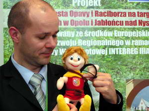 Rafał Jasiński prezentuje Raciborka – maskotkę miasta