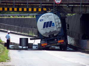 Tuż przed godziną 11.00 pod wiaduktem przy ulicy Rybnickiej zaklinowała się kędzierzyńska cysterna. To już nie pierwszy przypadek zablokowania się pojazdu w tym miejscu. Kierowca nie dostosował się do oznakowania; cysterna okazała się zbyt wysoka na warunki wiaduktu.