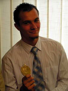Mistrz Artur Noga prezentuje zdobyte złoto