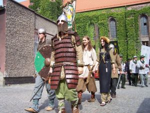 Po oficjalnych uroczystościach i koncercie muzyki dawnej, cała brać ruszyła korowodem przez Plac Księżnej Ofki ulicą Rzeźniczą pod Kolumnę Maryjną na Rynku. Tam zrobiono pamiatkowe zdjęcie.