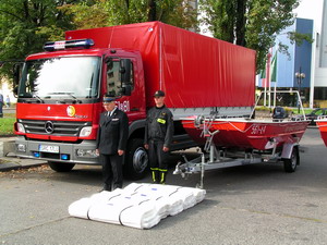 Raciborscy strażacy wzbogacili się o samochód kwatermistrzowski do przewozu wałów przeciwpowodziowych, przenośne wały przeciwpowodziowe, tamę pływającą do zwalczania nadzwyczajnych zagrożeń środowiska, łódź płaskodenną oraz zestaw komputerowy z certyfikatami podpisu elektronicznego.
