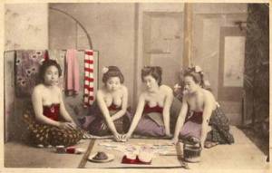 Któż więc mógł zrobić zdjęcia gejszom – tylko Japończyk, który znał i rozumiał tradycję, który mógł być dopuszczony do wnętrza herbaciarni. Zamorscy fotografowie też fotografowali gejsze, rzecz jasna, były przecież najbarwniejszym i najbardziej fascynującym elementem krajobrazu Japonii, ale było to właściwie zdjęcia manekinów w strój gejszy przybranych. Nie była wszakże to tylko ich wina, wymagania etykiety sprawiały, że zdjęcia gejsz musiały odpowiadać pewnym ustalonym zasadom. Japońscy fotografowie mniej uwagi tym właśnie zasadom poświęcali, gdyż znali je i mogli swobodniej się poruszać w ich ramach. – tekst Witold Englender