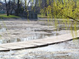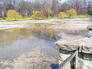 Sercem parku jest staw. Jednak w ubiegłym roku został osuszony i do chwili obecnej nie wygląda najlepiej. – Mam nadzieję, że coś z tym zrobią. Razem z małą zadrzewioną wysepką na środku był niewątpliwym atutem tego miejsca. Teraz wiosenne słońce odbija się w błocie, jakie po nim zostało – uważa Urszula Łodziak.