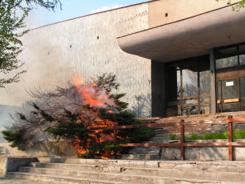 25 kwietnia około godz. 17.30 ozdobne krzewy przed Szkołą Muzyczną zajęły się ogniem.Zastęp straży pożarnej, który pojawił się po paru minutach, szybko uporał się z zagrożeniem. Cała akcja gaśnicza trwała 15 minut. Przyczyna pożaru nie jest jeszcze ustalona.