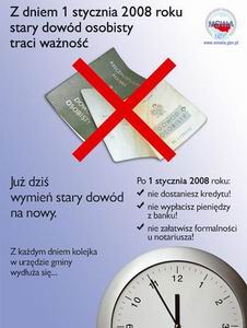 Zgodnie z ustawą z 10 kwietnia 1974 r. o ewidencji ludności i dowodach osobistych, proces wymiany dowodów kończy się 31 grudnia 2007 r. co oznacza, że od 1 stycznia 2008 r. stare książeczki stracą ważność.