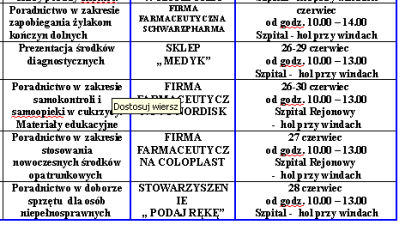 W ramach DNI PROMOCJI ZDROWIA od 26 d0 29 czerwca w Szpitalu Rejonowym będą wykonywane bezpłatne badania i udzielane porady według wykazu: