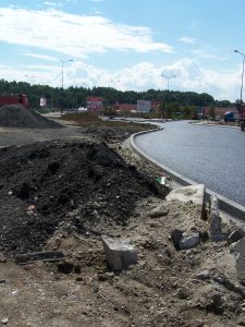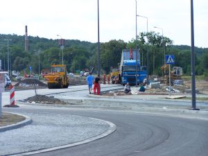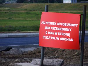 Rondo co prawda już gotowe, ale roboty przeniosły się teraz kawałek dalej – inwestor zamknął odcinek ul. Rybnickiej i zabrał się za jego remont. Objazd odbywa się przy markecie – jadąc od ul. Olimpijczyka w kierunku Brzezia należy wjechać na teren Auchan (tam też przeniesiono przystanek autobusowy) i dopiero stamtąd możliwy jest wjazd na ul. Rybnicką.