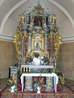 Ołtarz pochodzi z 1870 roku i posiada wystrój neobarokowy. Po obydwu stronach ołtarza znajdują się trzy kolumny, u góry usytuowany jest obraz św. Anny z 1893 roku, środek ołtarza, ponad tabernakulum, zajmuje obraz Matki Bożej. Oprócz cudownego obrazu, zabytkami w kościele są dwa boczne ołtarze – Najświętszej Krwi i Świętego Krzyża, pochodzące z końca XVII wieku – z tym, że ołtarz Najświętszej Krwi został w 1869 roku ozdobiony nowym obrazem namalowanym przez malarza Lammicha. Jego też dziełem jest obraz przedstawiający św. Józefa. W 1932 roku obraz Lammicha w ołtarzu Najświętszej Krwi został odnowiony przez malarza Ł. Mrzygłoda. Zadbano również o otoczenie kościoła, odnowiono grotę Matki Bożej Fatimskiej, stacje Drogi Krzyżowej i stacje Różańca Świętego, zakupiono także plac obok kościoła, gdzie wybudowano plebanię, z tyłu kościoła powstał ołtarz polowy z kopią obrazu Matki Bożej. Najbardziej uroczyste odpusty odbywają się w każdą niedzielę po Nawiedzeniu, Wniebowzięciu i Narodzeniu Najświętszej Maryi Panny. Z kościołem Matki Bożej związany jest klasztor sióstr Annuntiata. Z dniem 15 września 1990 roku oficjalnie duszpasterstwo w parafii przejął ks. Eugeniusz Dębicki, który gorliwie kontynuuje dalszą trudną pracę integracyjną wspólnoty parafialnej. W ciągu tych przeszło dwunastu lat został otynkowany kościół, w 1990 roku wyremontowano organy, w 1992 roku wymalowano kościół, w 1995 roku kościół otrzymał nowy dach. Najważniejszą jednak rzeczą jest dalsza praca nad jednością całej, już obecnie dużej, wspólnoty parafialnej, dlatego między innymi każdego 13 dnia miesiąca od maja do października odbywają się nabożeństwa fatimskie,w których bierze udział wielu parafian i nie tylko.