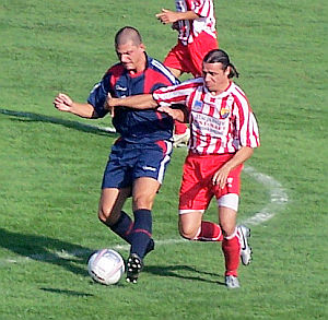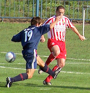 Po pierwszej bezbramkowej połowie, najpierw w 52 min. spotkania po dużym zamieszaniu w polu karnym gospodarzy, strzałem z poza pola karnego gola dla drużyny gości zdobył Sebastian Hendel. Szczęśliwie szybka była odpowiedź gospodarzy. W dwie minuty później wyrównał Mariusz Frydryk. Goście mieli swoja szansę w 66 min, gdy piłka trafiła w słupek bramki „Unii”, a dobitkę z linii bramkowej wybił Sławik.