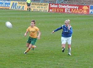 Tak było przez pierwsze 20 min, później zawodniczki „Unii” korygując ustawienie „zagęściły” środek pola i zaczęły odważniej atakować, a kibice wciaż czekali na przełamanie niemocy strzeleckiej napastniczek „Unii”.