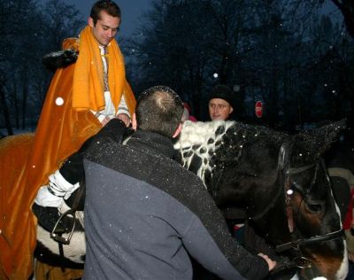 W niedzielę na białym koniu, sypiąc śniegiem i strasząc mrozem, Marcin objechał posesje wokół kościoła pw. NSPJ w Raciborzu.