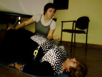 Zdj.1. Podczas wykonywania ćwiczeń rehabilitantka inspiruje do ich systematycznego, codziennego wykonywania.
