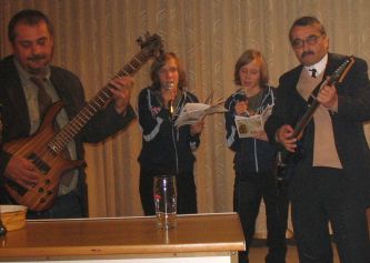 Uczestnicy zabawy zostali zaopatrzeni przez organizatorów w śpiewniki wydane specjalnie na tę okazję, tak aby każdy z biesiadników mógł włączyć się w wspólny śpiew i zabawę. Do tańca przygrywał zespół w składzie: Leon Fila-gitara basowa, Adam Cieślik-gitara, instrumenty klawiszowe, Faustyna i Fabiana Cieślik – śpiew.