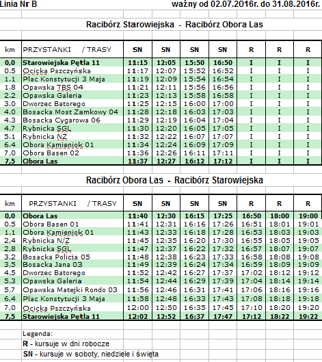 Poniżej zamieszczamy rozkład jazdy autobusu linii "B".