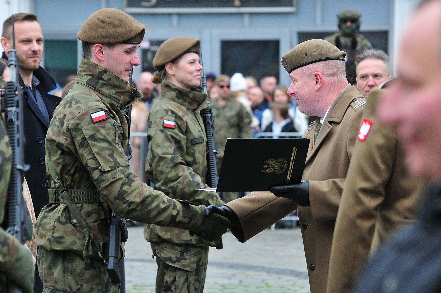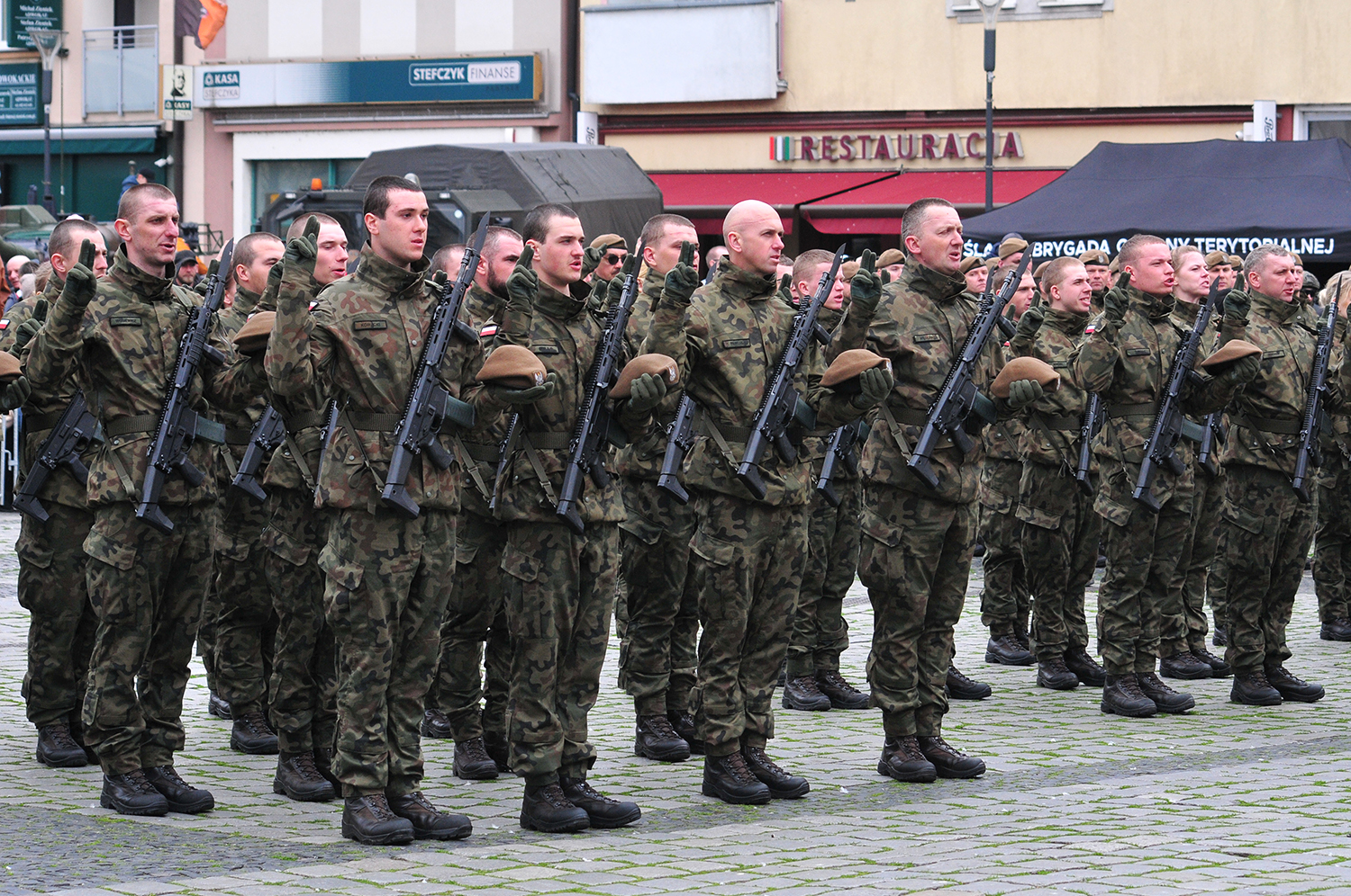 Szeregi Wojsk Obrony Terytorialnej zasilili kolejni ochotnicy. 30 marca na raciborskim rynku odbyła się przysięga wojskowa żołnierzy 13. Śląskiej Brygady Obrony Terytorialnej. To jeden z najważniejszych momentów w służbie. – Dla przyszłych żołnierzy to wyjątkowa chwila – moment, w którym podejmują decyzję o wstąpieniu w szeregi Wojsk Obrony Terytorialnej, deklarując gotowość do niesienia pomocy w sytuacjach kryzysowych, wspierania lokalnych społeczności i obrony Ojczyzny. To także wzruszający moment dla ich rodzin, które z dumą obserwują, jak ich bliscy podejmują ważną misję. Służba w WOT to nie tylko szkolenia wojskowe, ale także budowanie więzi, współpraca z innymi i zdobywanie cennych umiejętności, które mogą przydać się zarówno w życiu cywilnym, jak i podczas działań wojskowych. Jest to formacja dla ludzi z pasją, gotowych do działania i poświęcenia na rzecz bezpieczeństwa kraju i lokalnej społeczności – podkreśla WOT.