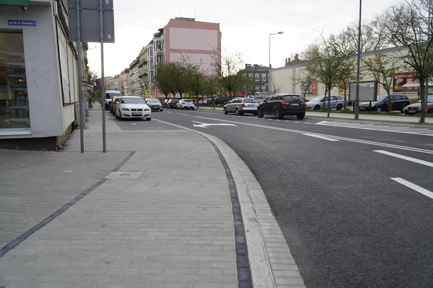 Na ul. Staszica oprócz nowej nawierzchni pojawił się ciąg pieszo-rowerowy oraz pasy zieleni.