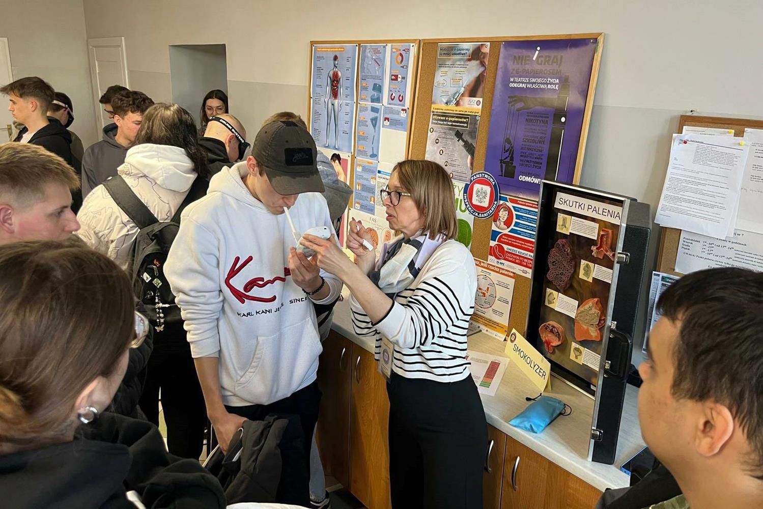 Uczestnicy mogli również skorzystać z bezpłatnych badań, takich jak pomiar ciśnienia tętniczego i poziomu tlenku węgla w wydychanym powietrzu. Odbyły się także instruktaże samobadania piersi i jąder prowadzone przez specjalistów z ANS. Ponadto prowadzono indywidualne konsultacje dotyczące szczepień, ochrony przed kleszczami oraz innych zagadnień zdrowotnych. Na uczestników czekały również stoiska profilaktyczne poruszające temat uzależnień – od alkoholu (w tym FAS), narkotyków, tytoniu i e-papierosów. Dzięki alkogoglom i narkogoglom można było w praktyce przekonać się, jak niebezpieczne są substancje psychoaktywne. Uwagę przyciągała też wystawa „Superbakterie Oporniaki” zwracająca uwagę na rosnącą odporność bakterii na antybiotyki.