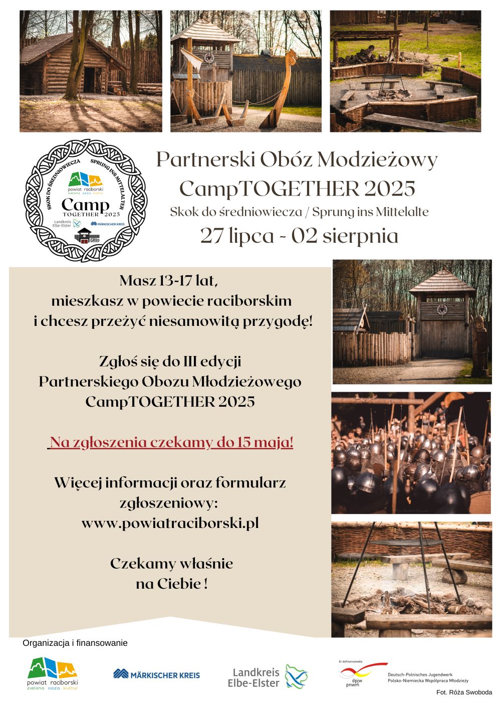 Ruszyła rekrutacja do III edycji Partnerskiego Obozu Młodzieżowego CampTogether 2025. W tym roku odbędzie się on od 27 do 2 sierpnia na terenie powiatu raciborskiego pod hasłem „Skok do średniowiecza/Sprung ins Mittelalter”.