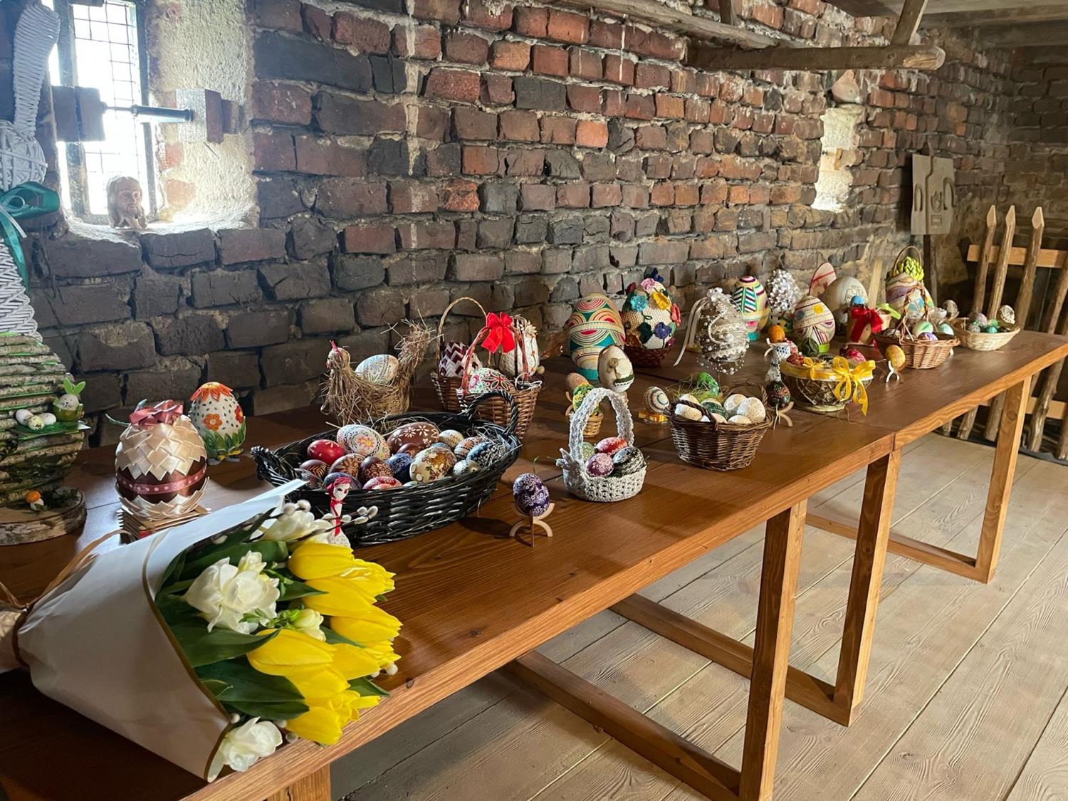 Jednym z głównych punktów ekspozycji były wielkanocne pisanki i kraszanki – nie tylko symbole świąt, ale także elementy bogatej kultury ludowej Śląska. Te misternie zdobione jajka mają swoje korzenie w dawnych, jeszcze przedchrześcijańskich wierzeniach, kiedy jajko postrzegano jako znak odrodzenia i nowego życia. Kraszanki, barwione naturalnymi metodami na jeden kolor, od pokoleń są nieodłącznym elementem świątecznego stołu w wielu śląskich domach. Na wystawie zaprezentowano prace uczestników Powiatowych Konkursów Wielkanocnych. Ręcznie wykonane pisanki i kraszanki zachwycały różnorodnością wzorów i technik, łącząc w sobie kunszt rękodzieła i szacunek dla tradycji. Wydarzenie było więc nie tylko okazją do poznania lokalnych zwyczajów, ale też momentem refleksji nad wartością przekazywanych z pokolenia na pokolenie świątecznych rytuałów.
