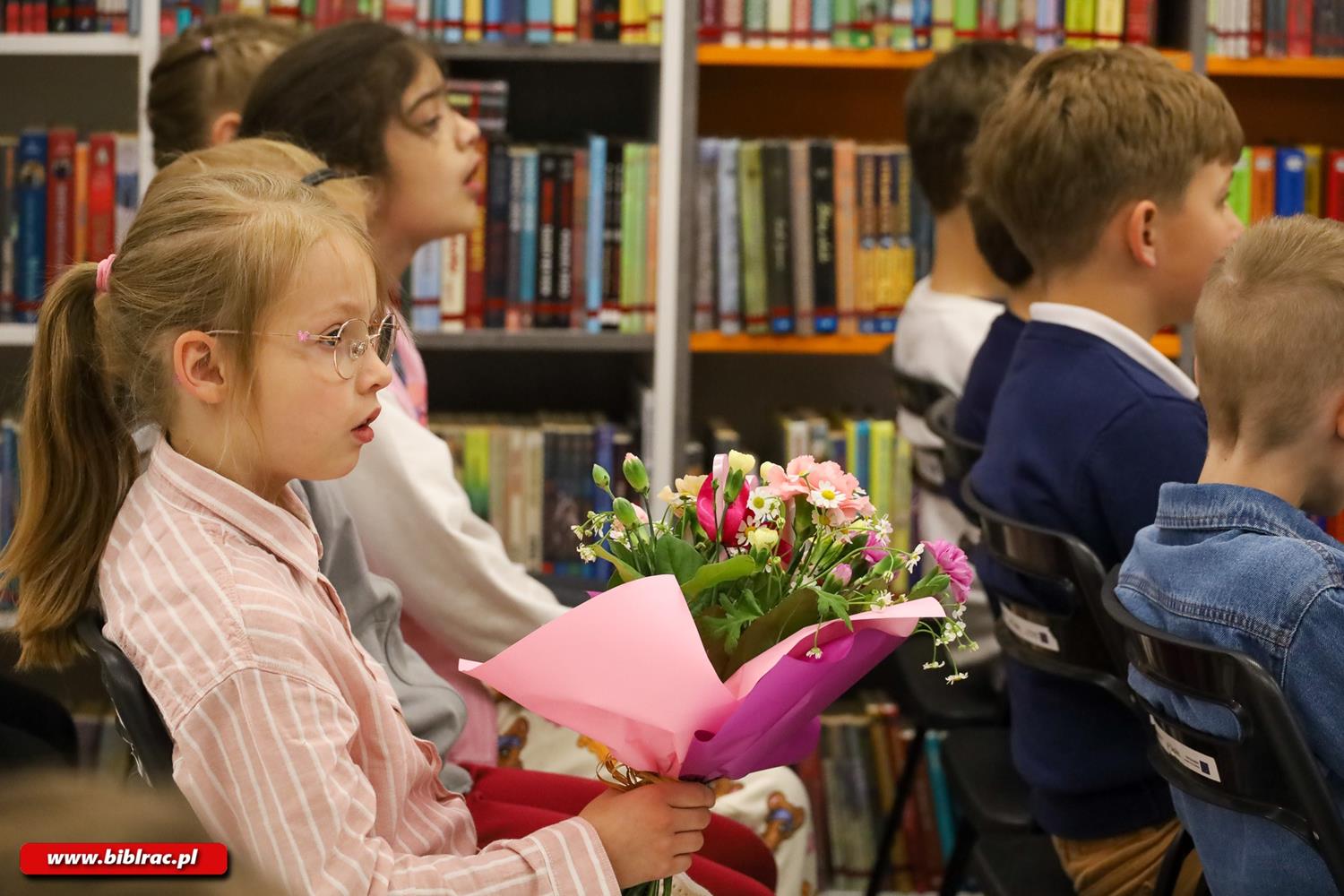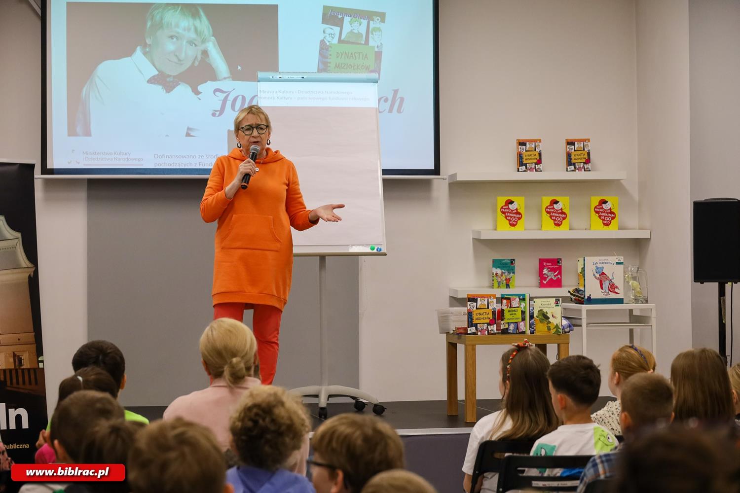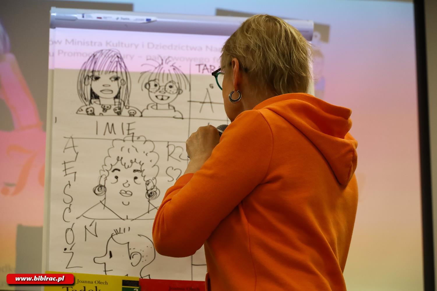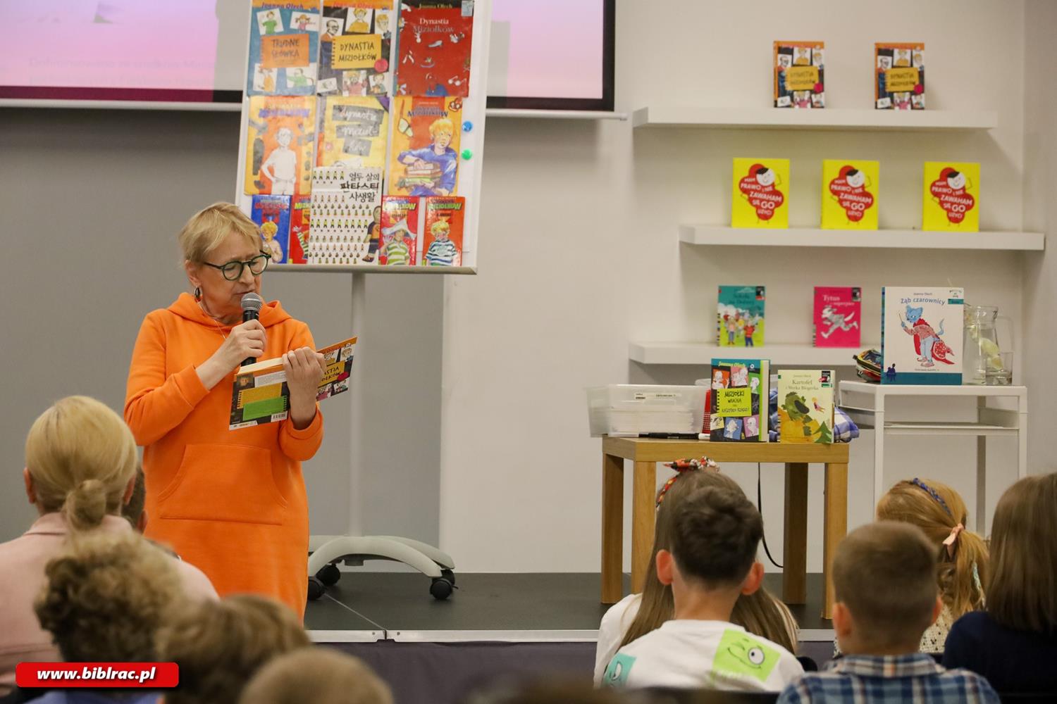 Podczas spotkania dzieci miały okazję poznać autorkę popularnych książek, takich jak „Pulpet i Prudencja”, „Szkoła detektywów Emila Wykopka”, „Mam prawo i nie zawaham się go użyć!” czy kultowej „Dynastii Miziołków”. Joanna Olech opowiedziała także o swojej twórczości w ramach serii „Czytam sobie”, np. „Tytus – superpies” i „Tadek i spółka”, które pisane są według zasady: bez literek z ogonkami, dwuznaków i trudnych głosek. Uczniowie mogli sami spróbować swoich sił w tworzeniu takich zdań, co wcale nie okazało się łatwe.