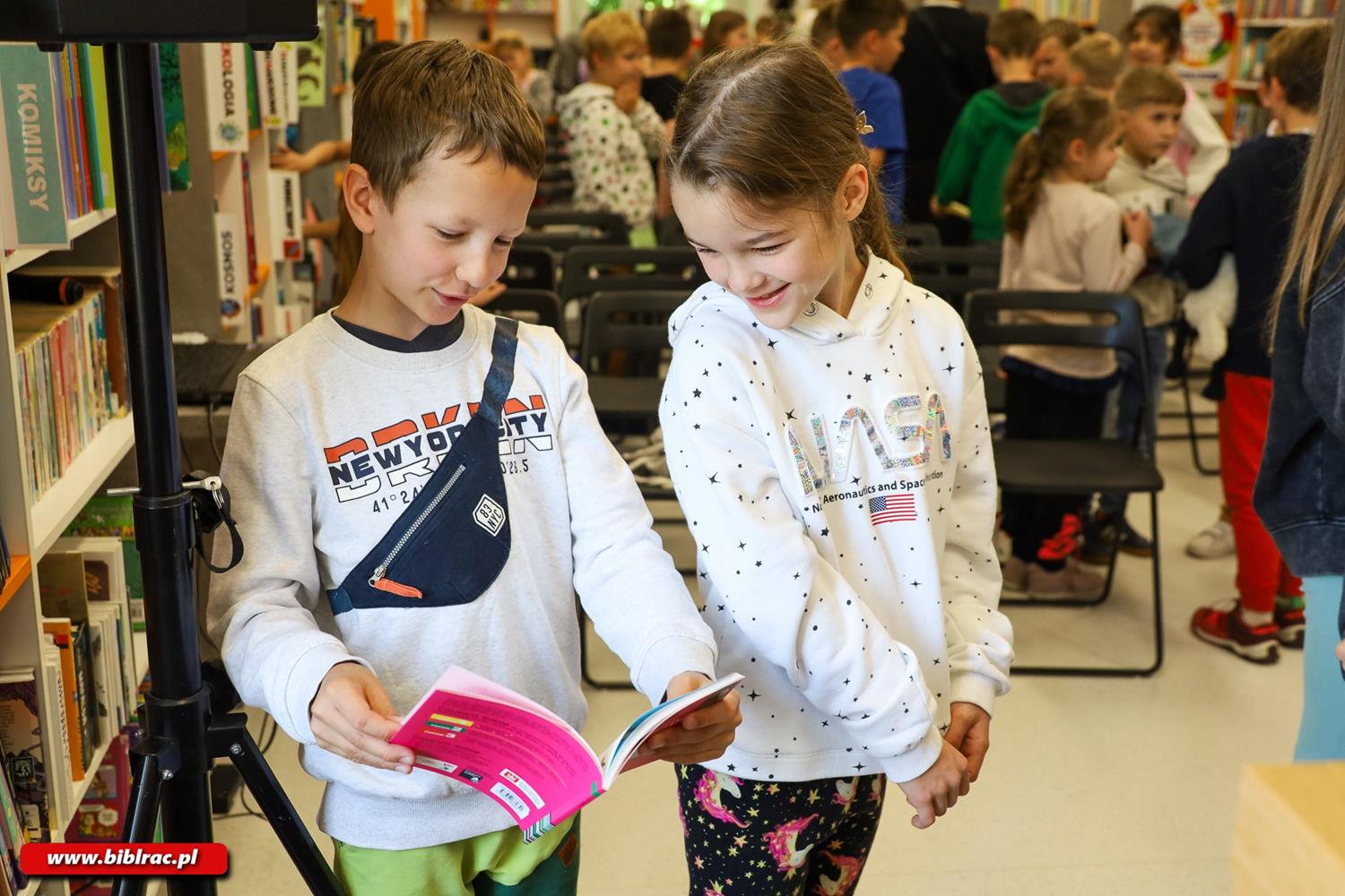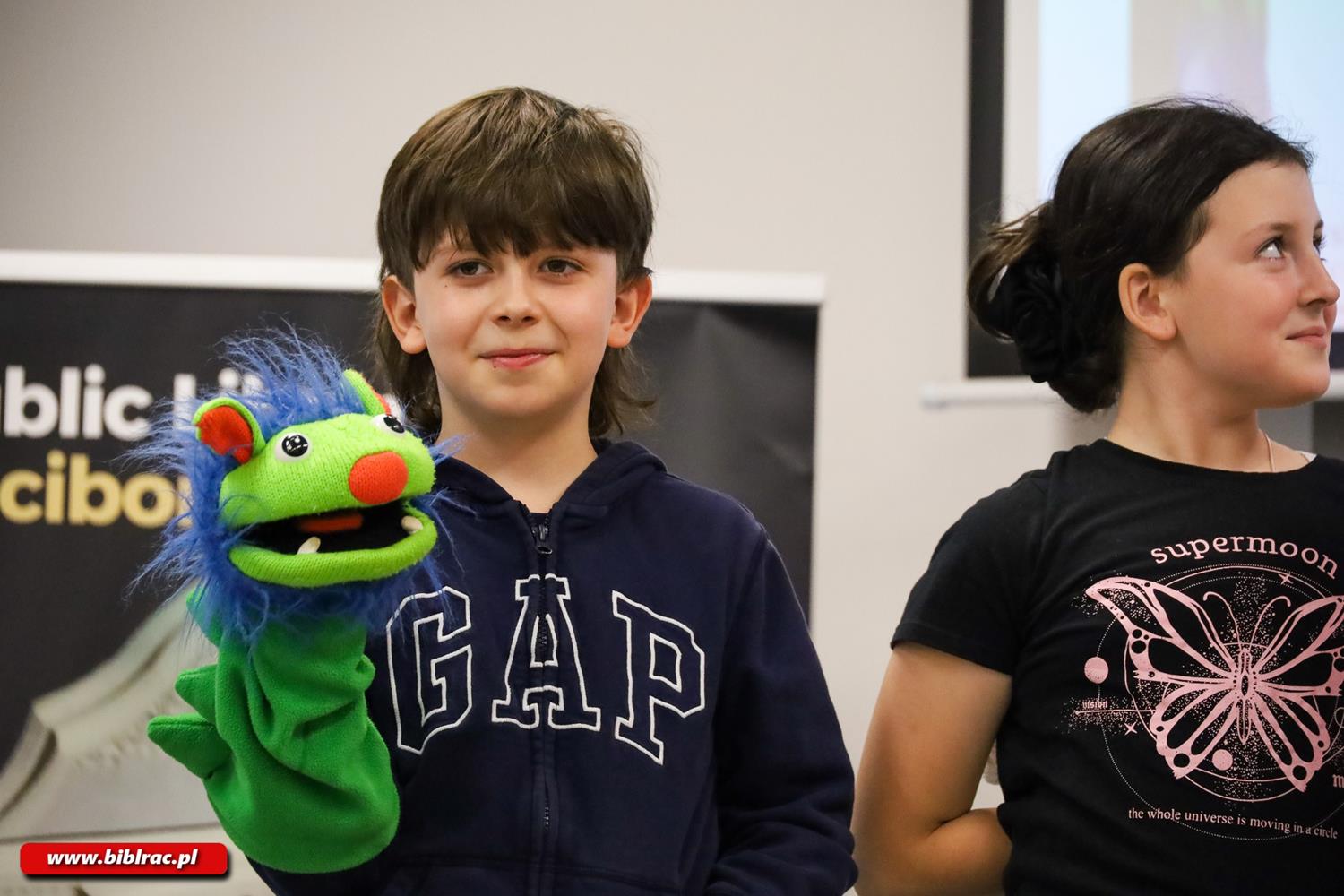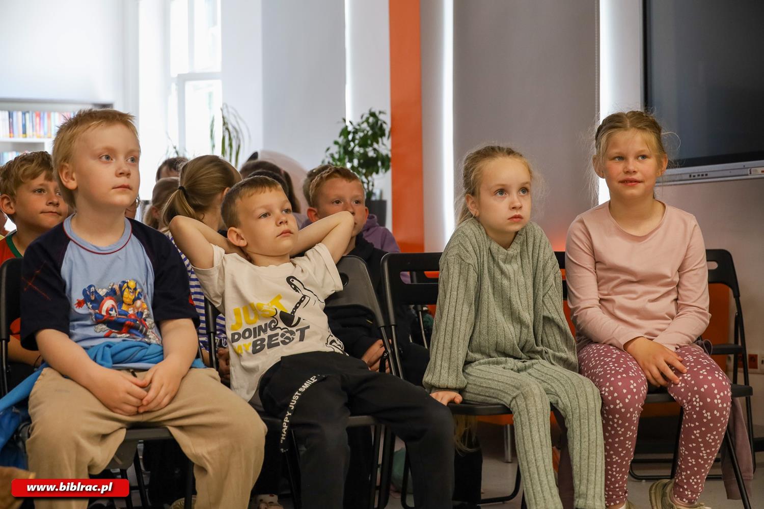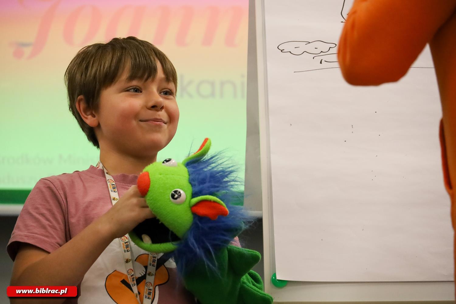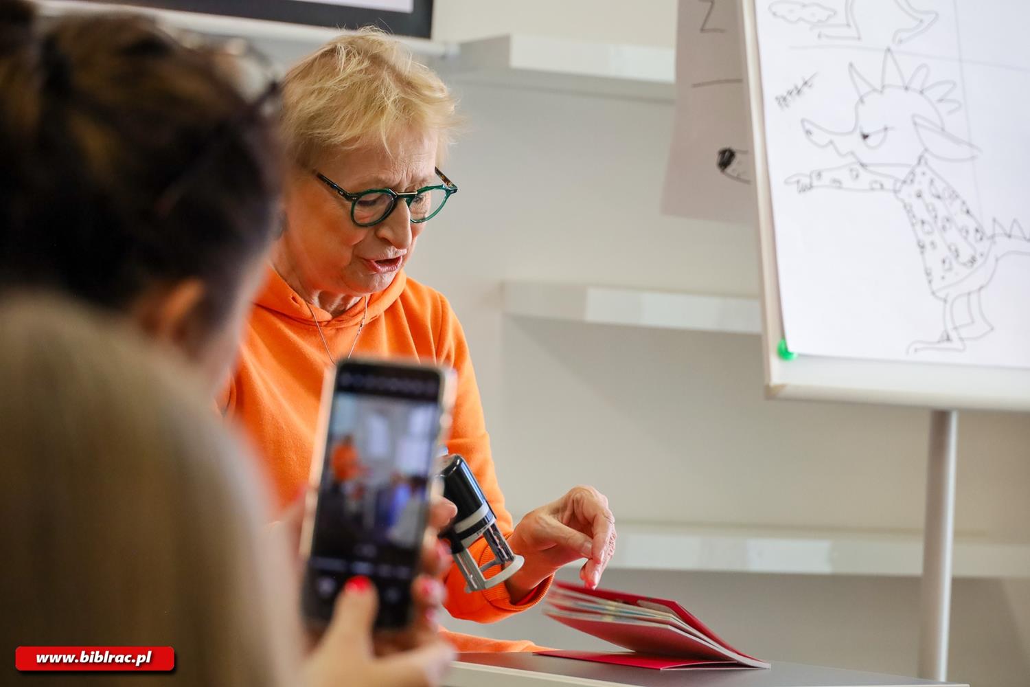 Dzieci dowiedziały się, jak powstają książki Joanny Olech, nie zabrakło też głośnego czytania, wspólnego opowiadania historii o smoku Pomponie i wyborów Super Miziołka.
