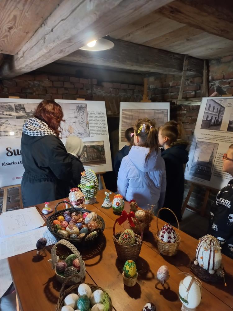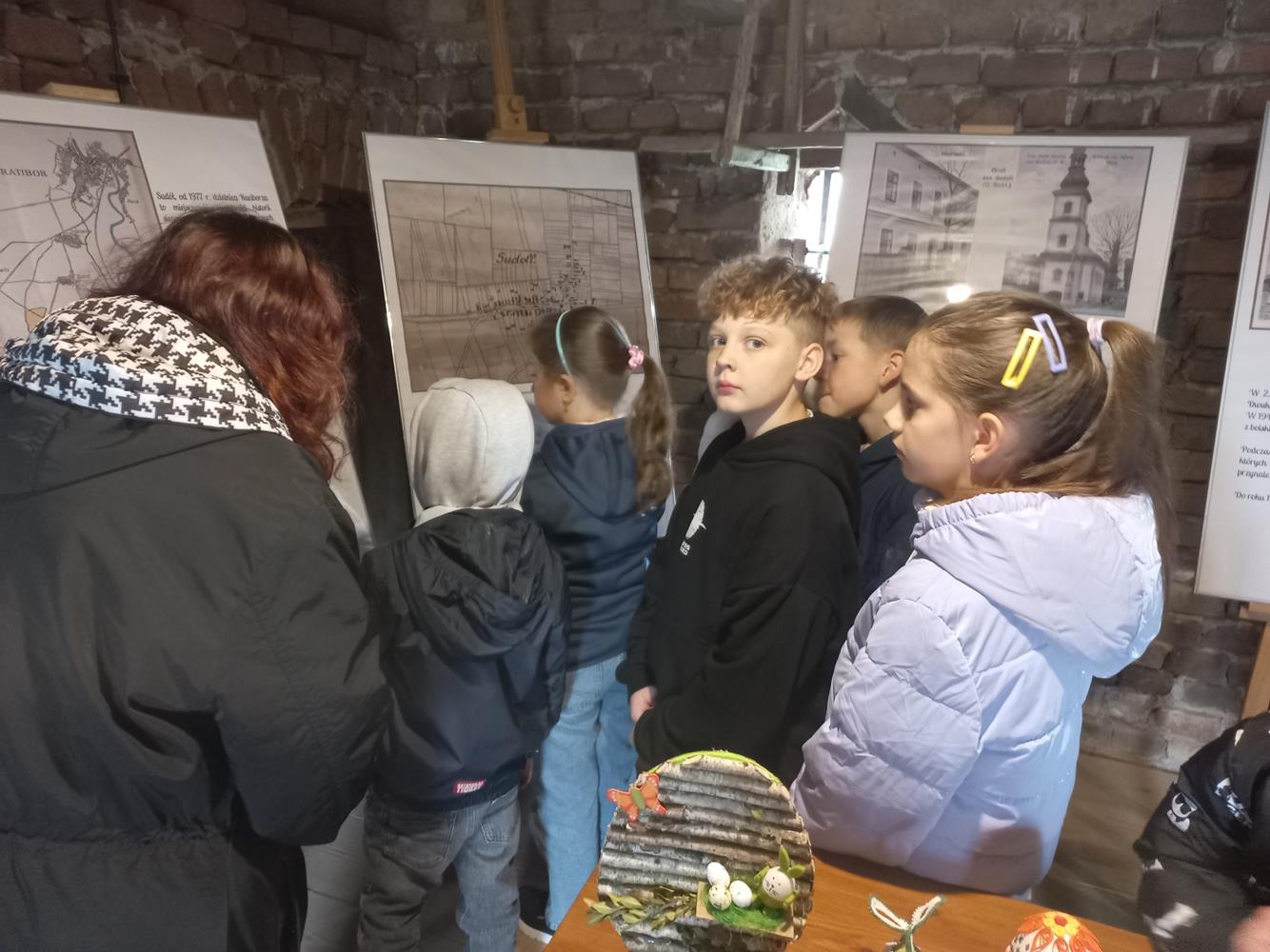 Dodatkową atrakcją dnia była podróż w czasie. Julita Ćwikła, etnografka z Muzeum w Raciborzu, oprowadziła dzieci po wnętrzu zabytkowego spichlerza i po zorganizowanej tam wystawie plenerowej „Sudół historia i tradycje wsi”. Uczniowie mieli również okazję podziwiać ekspozycję wielkanocnych pisanek i kraszanek będących pracami wykonanymi na Powiatowe Konkursy Wielkanocne.