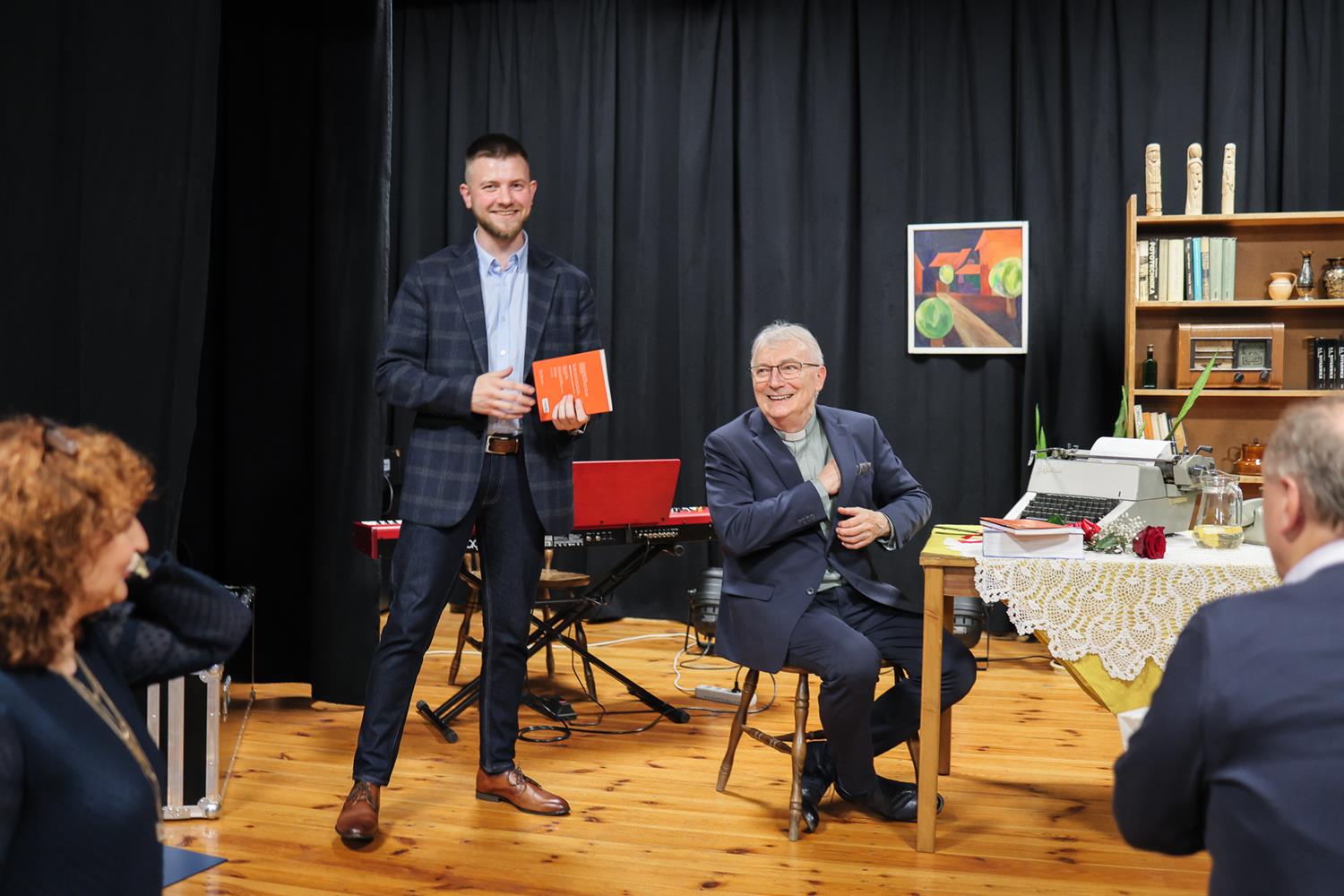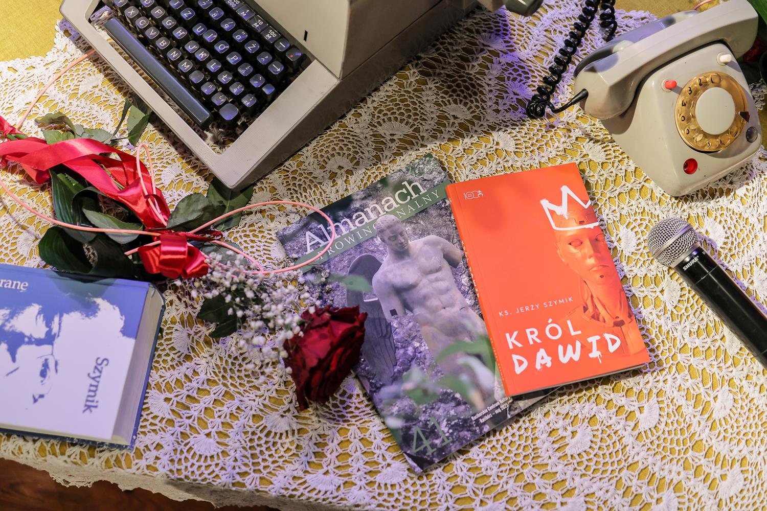 Wśród stałych współpracowników pisma jest ks. prof. Jerzy Szymik – urodzony w Pszowie wybitny teolog i poeta, który uczestniczy w tworzeniu „Almanachu Prowincjonalnego” od samego początku. Podczas sobotniego wieczoru wystąpił jako gość specjalny, promując swój trzynasty tom poezji pt. „Król Dawid”. Rozmowę z autorem poprowadził redaktor naczelny Marek Rapnicki, a oprawę muzyczną – w klasycznym tonie – zapewnił przy fortepianie Mateusz Wycisk. – Dobra poezja opisuje świat, próbuje go zmieniać, prowokuje do zadumy i refleksji, a czasem do śmiechu. Dlatego też spotkanie promocyjne przy sali wypełnionej po brzegi przerodziło się w interesujące rozmowy w kuluarach – podsumowuje RCK.