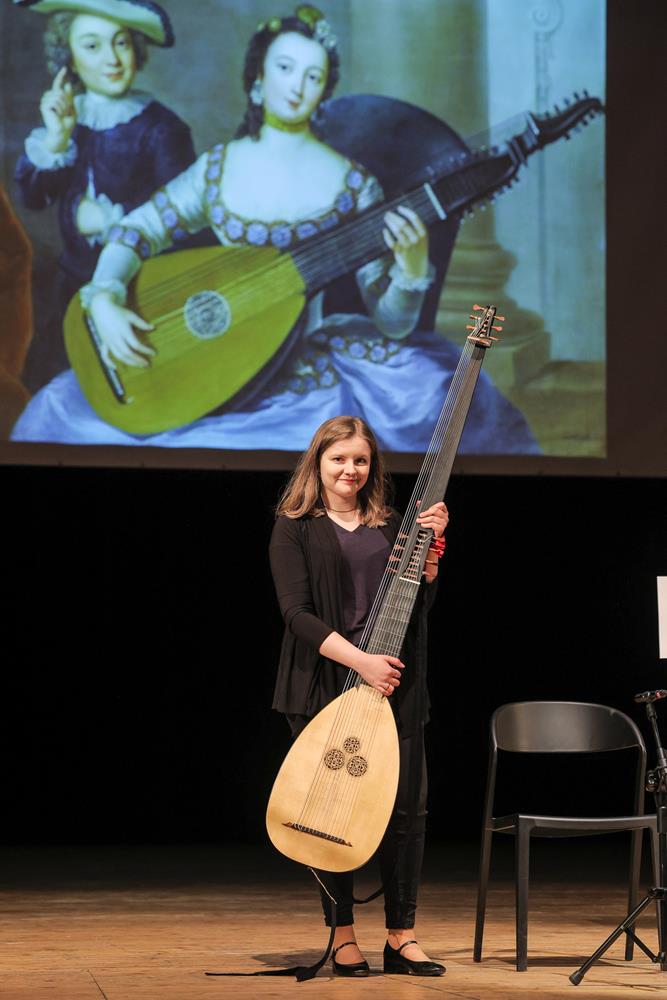 Po prezentacjach harfy, altówki, skrzypiec, wiolonczeli, kontrabasu, fortepianu, klawesynu, a także gitar od klasycznej po akustyczną i elektryczną nadszedł czas na historyczne smyczki. Gościem specjalnym koncertu była Maria Korzeniowska – gitarzystka klasyczna, która gra także na lutni. Absolwentka Akademii Muzycznej w Krakowie, gdzie obecnie kontynuuje studia drugiego stopnia z muzyki dawnej, uczy w PSM I stopnia w Sobolowie i gra w zespole Lucky Lutes, czyli czyli „Szczęśliwe lutnie”. Jej obecność w RCK nie jest nowością – artystka gościła już wcześniej na raciborskiej scenie w ramach koncertów umuzykalniających.