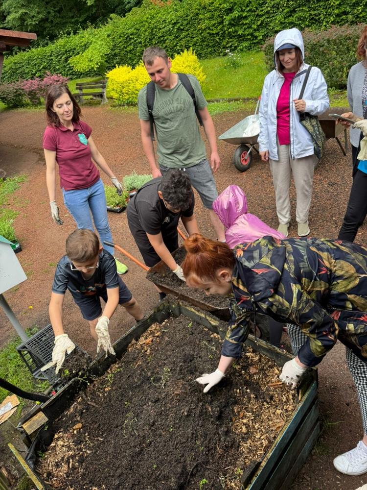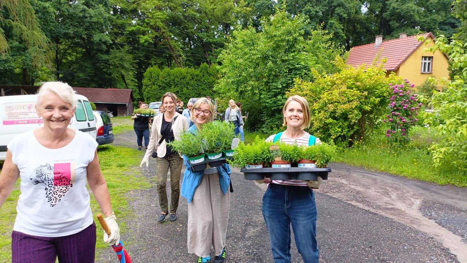 Druga część spotkania poświęcona była praktycznym zajęciom, a uczestnicy wspólnie wykonali pokazową ziołową skrzynię permakulturową. Taka skrzynia to innowacyjne rozwiązanie, które dzięki odpowiedniemu rozplanowaniu wielu warstw podłoża pozwala stworzyć samowystarczalny, ekologiczny i odporny na szkodniki warzywnik. Warstwy skrzyni składają się z chrustu (pełniącego funkcję drenażu), kartonów, zrębków oraz ziemi. Tak przygotowana baza może służyć pod uprawy przez wiele lat bez potrzeby corocznego nawożenia. Uczestnicy warsztatów otrzymali również cenne wskazówki dotyczące naturalnych metod walki ze szkodnikami, a także przepisy na naturalne nawozy z pokrzywy i wrotyczu.