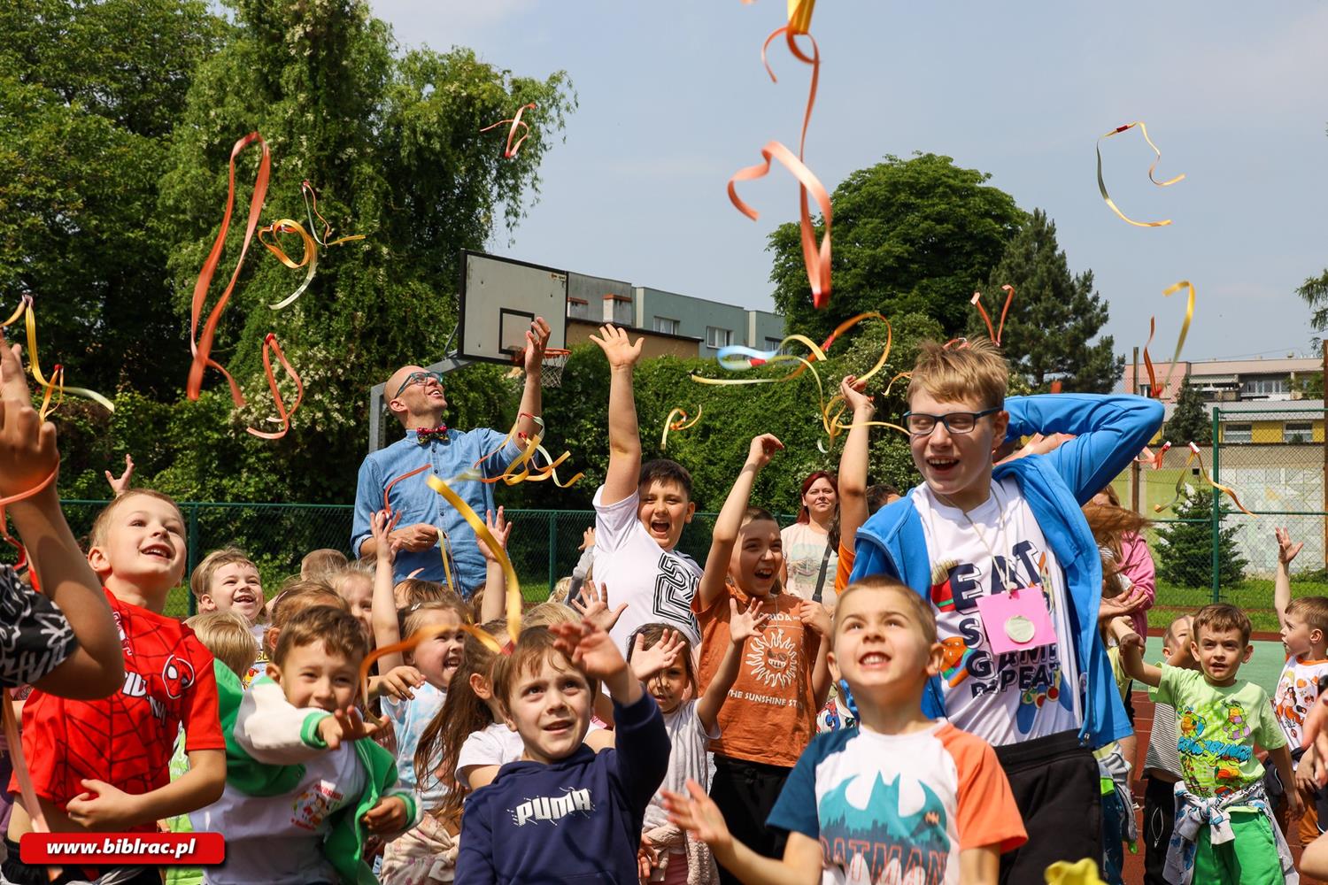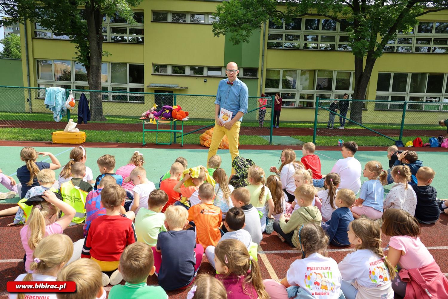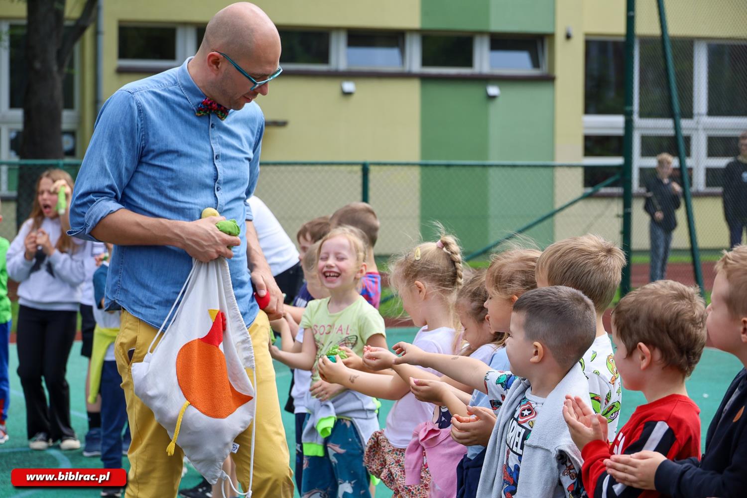 Po sportowej części wydarzenia na uczestników czekała niespodzianka – spotkanie z Panem Poetą, autorem uwielbianych przez dzieci książek. Literackie animacje przeniosły uczestników do świata wyobraźni: w powietrzu unosiły się balony, ożywały pacynki, a każde dziecko mogło założyć tyle okularów, ile tylko chciało. Spotkanie pełne śmiechu, zabawy i opowieści rozbudziło ciekawość i miłość do książek wśród najmłodszych.