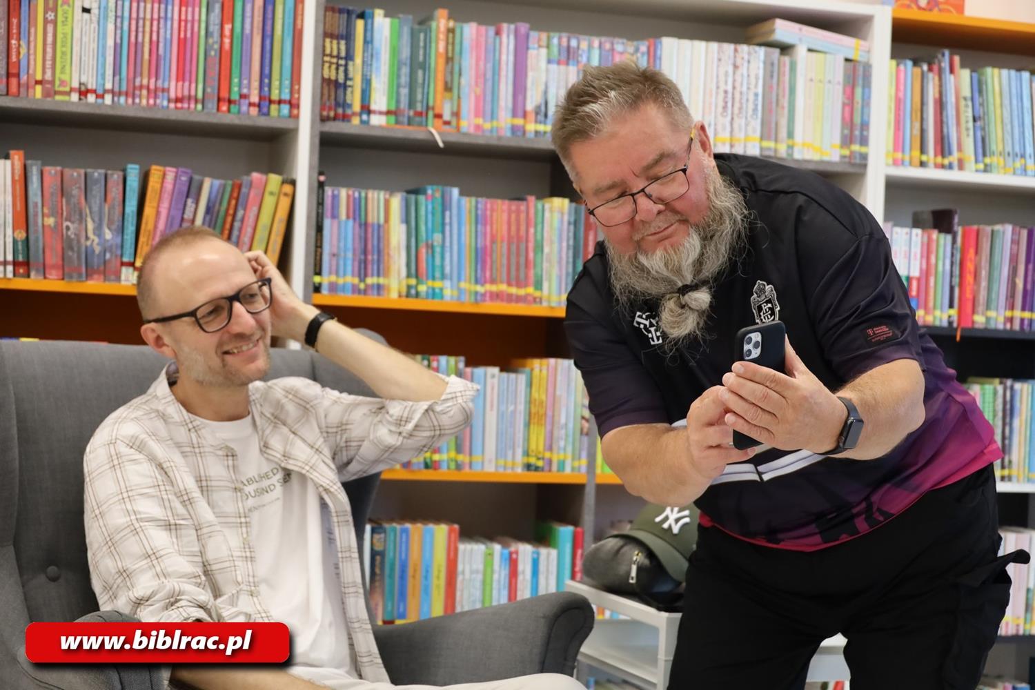 Rozmowy toczyły się nie tylko wokół ojcostwa i refleksji na temat roli taty w dzisiejszym świecie, ale także dotyczyły muzyki, festiwali rockowych i kulis pracy radiowej. Atmosfera była kameralna, ale pełna emocji i inspiracji. Dla tych, którzy chcą dowiedzieć się, co znaczy być „lekko odklejonym ojcem”, biblioteka poleca książkę Tatowanie – dostępną w jej zbiorach.