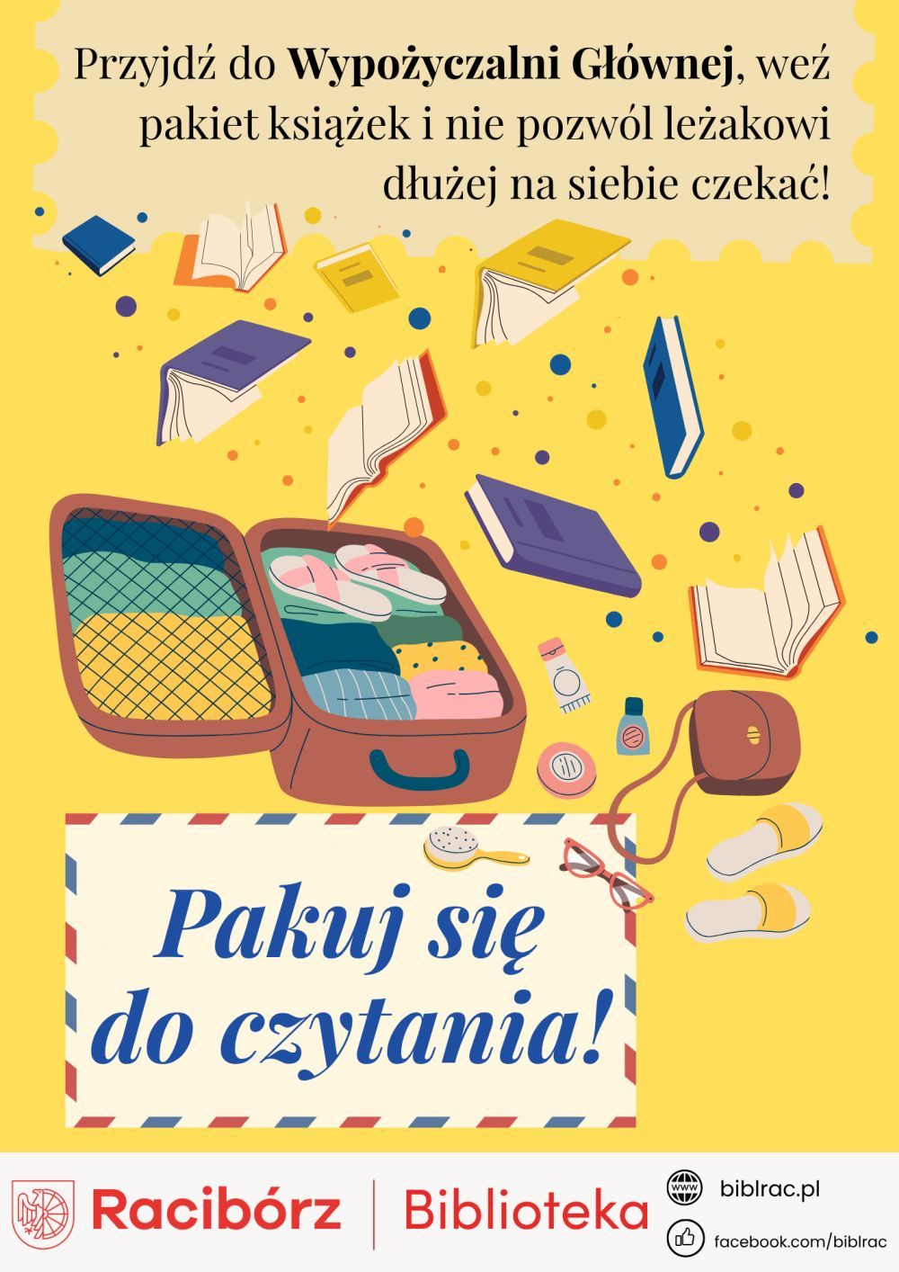 Od 30 czerwca do 30 sierpnia Miejska i Powiatowa Biblioteka Publiczna w Raciborzu zaprasza czytelników do udziału w wakacyjnej akcji „Pakuj się do czytania!”. W tym czasie w Wypożyczalni Głównej dostępne będą gotowe pakiety książek tematycznych, przygotowane specjalnie z myślą o letnim wypoczynku.
