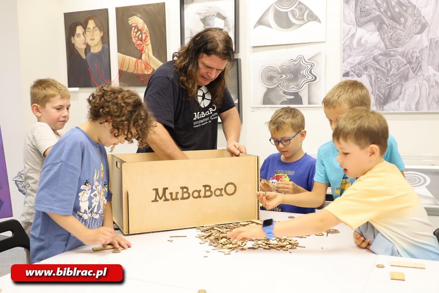 W drugiej części spotkania odbyły się warsztaty z wykorzystaniem Klocków Myślenia Kreatywnego MuBaBaO. Dzieci tworzyły własne konstrukcje – od karetek i samochodów po fantazyjne statki kosmiczne – rozwijając zdolności manualne, logiczne myślenie i twórcze podejście do rozwiązywania problemów. Nowością były warsztaty z wykorzystaniem techniki pop-up, podczas których dzieci poznawały tajniki tworzenia trójwymiarowych ilustracji z papieru. Uczestnicy uczyli się, jak zaprojektować nie tylko pojedynczy obrazek, ale całą przestrzenną książeczkę z własną historią. Zajęcia łączyły elementy sztuki, narracji i kreatywnego myślenia, pobudzając wyobraźnię i umiejętność opowiadania. Na zakończenie każdy uczestnik miał okazję zaprezentować swoje dzieło i opowiedzieć własną historię.