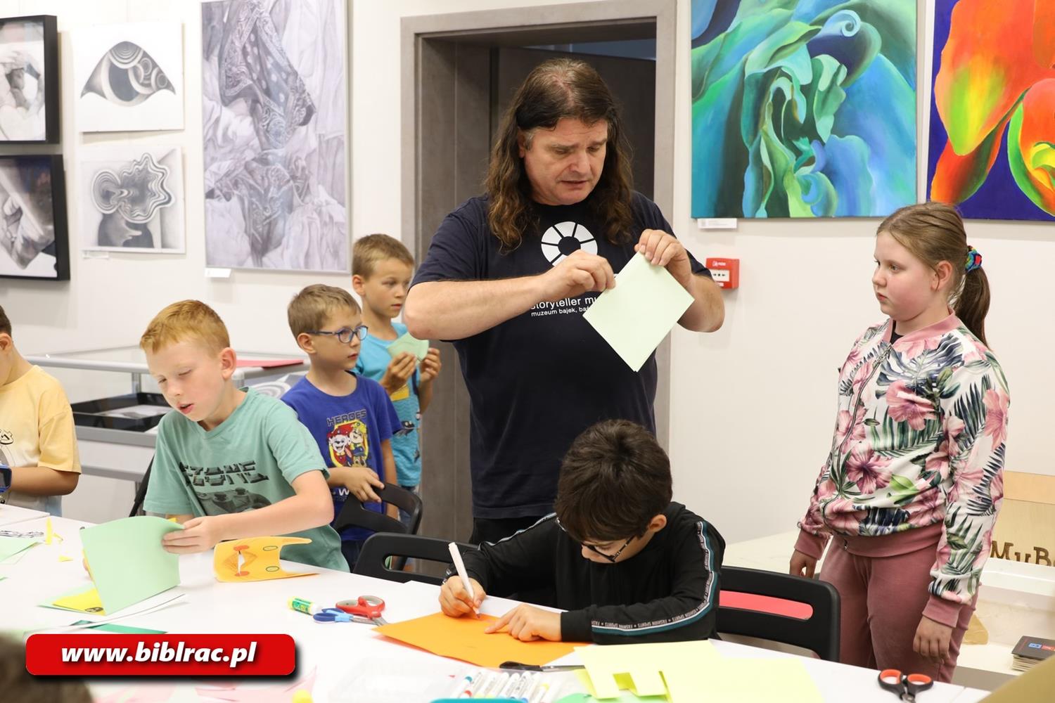 Zajęcia rozpoczęły się od niezwykłej podróży do Japonii, w którą młodych uczestników zabrał Michał Malinowski – profesjonalny opowiadacz bajek, pedagog, podróżnik i pisarz. Jego żywe, interaktywne opowiadanie angażowało dzieci nie tylko słuchowo, ale również ruchowo – uczestnicy naśladowali postacie, wydawali dźwięki i aktywnie współtworzyli historię.