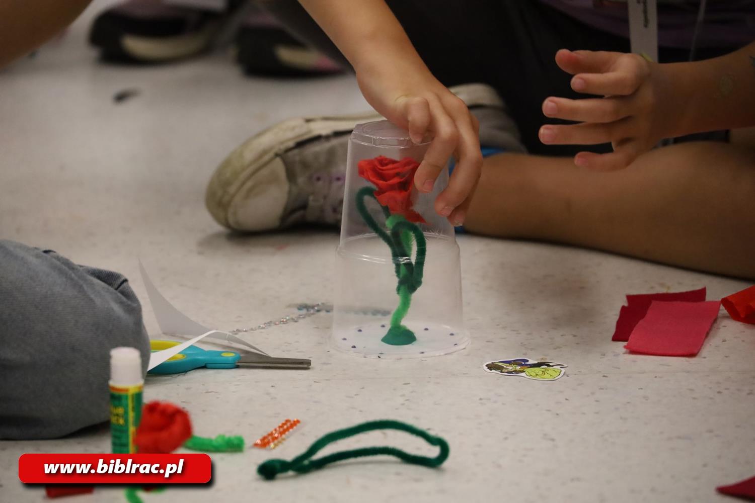 Natomiast czwartkowe zajęcia przeniosły dzieci do XVIII-wiecznej Francji. Na podstawie filmu „Piękna i Bestia” młodzi uczestnicy odkrywali sekrety życia na królewskich dworach, poznali dawną modę, kuchnię oraz wyjątkową miłość Belli do książek. Spotkanie zakończyły warsztaty plastyczne, podczas których dzieci wykonały maski Bestii i magiczne róże – symbole przemiany i siły dobra.