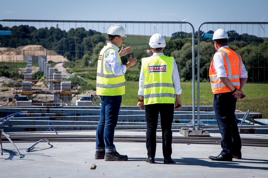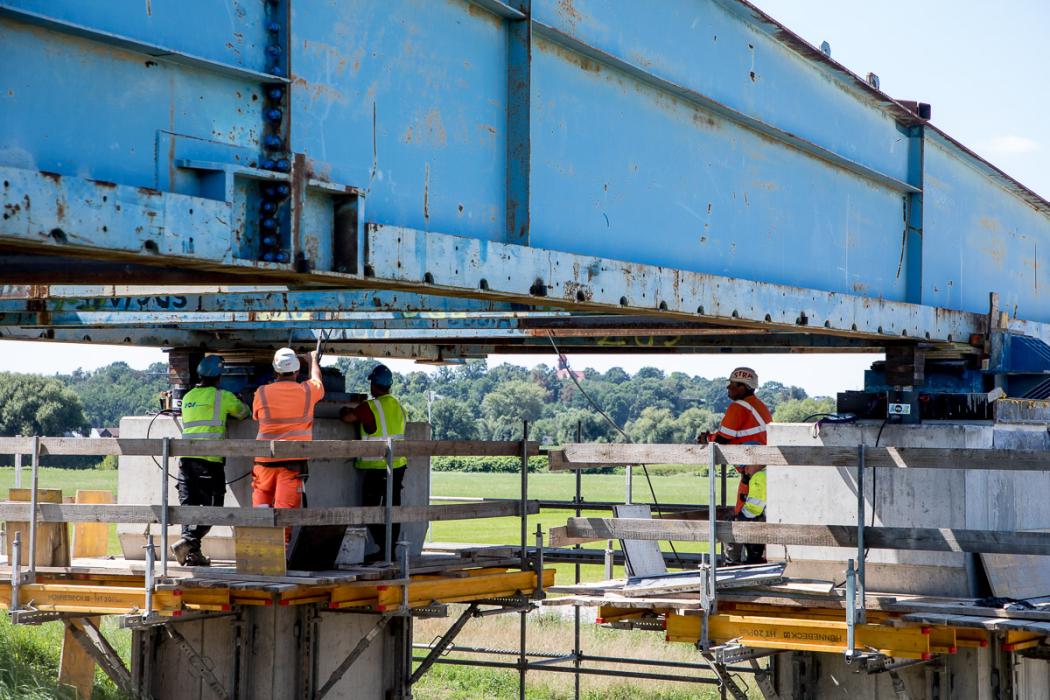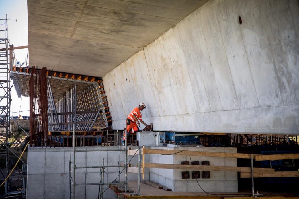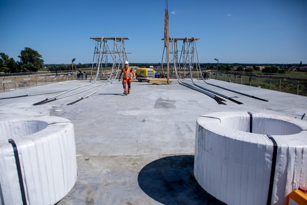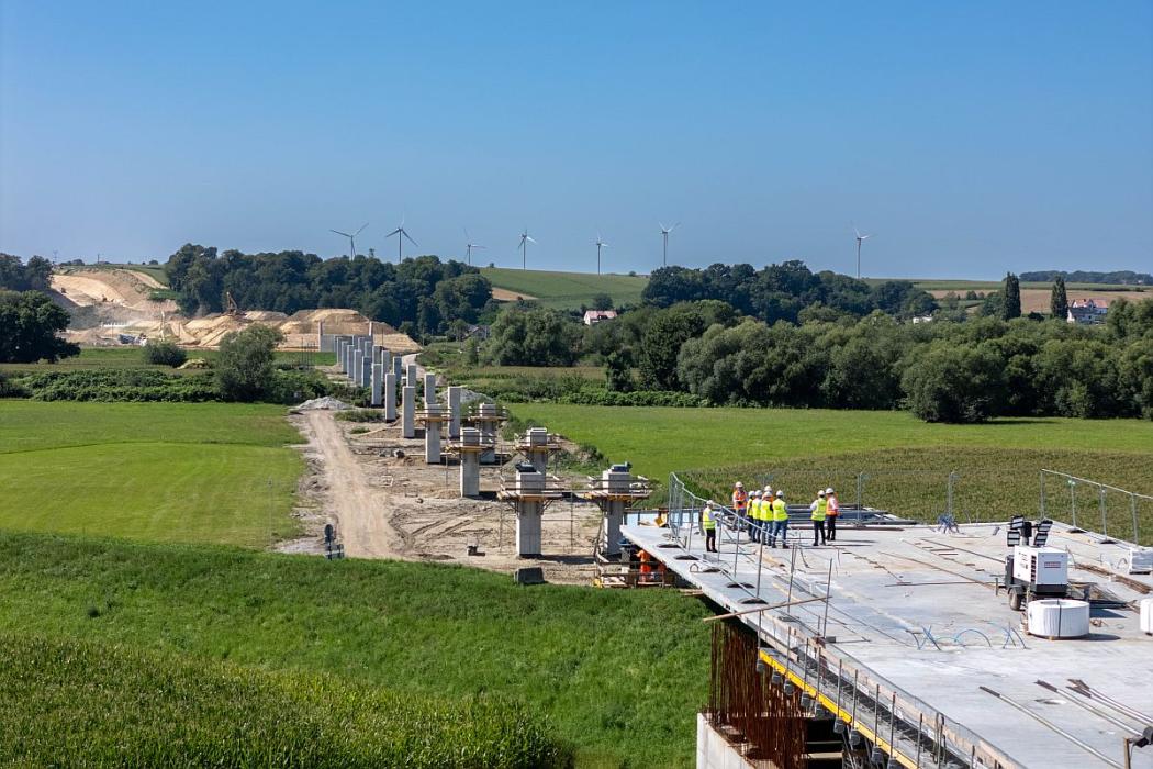 Zbigniew Tabor, dyrektor Zarządu Dróg Wojewódzkich w Katowicach, wyjaśnia, że na stanowisku zlokalizowanym na brzegu rzeki powstają segmenty konstrukcji o długości 25 m, a po wykonaniu zbrojenia i betonowaniu przygotowywany jest kolejny element. – Ta technologia stosowana jest od już blisko 35 lat, sprawdza się i z punktu widzenia wykonawcy jest bardzo dobra. Są to bowiem powtarzalne czynności. Rytm betonowania i wysuwania następuje w ciągu siedmiu dni. Czyli raz w tygodniu powstaje 25-metrowy segment. Przewidujemy, że ustrój nośny będzie gotowy za sześć miesięcy. Budowa całościowa jest skomplikowana, wymaga jeszcze wielu zabiegów, jak choćby dylatacji czy wykonania urządzeń odwadniających. Za rok ten obiekt będzie już gotowy, przy czym termin oddania mostu do użytku to styczeń 2027 r. – wyjaśnia Zbigniew Tabor.
