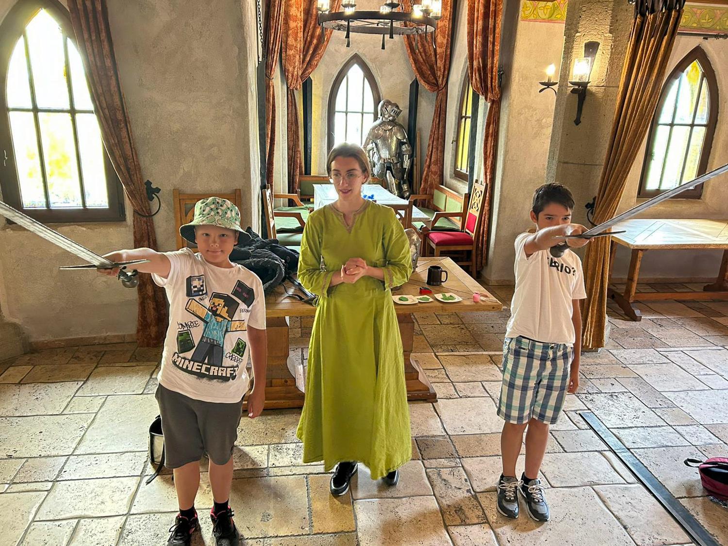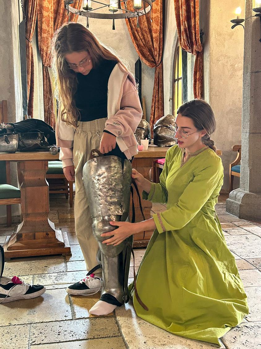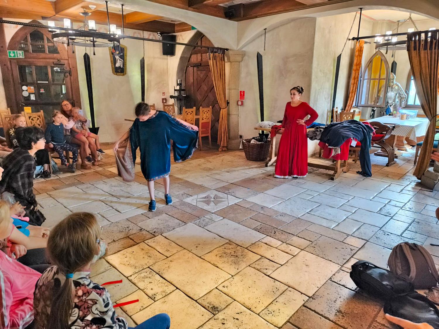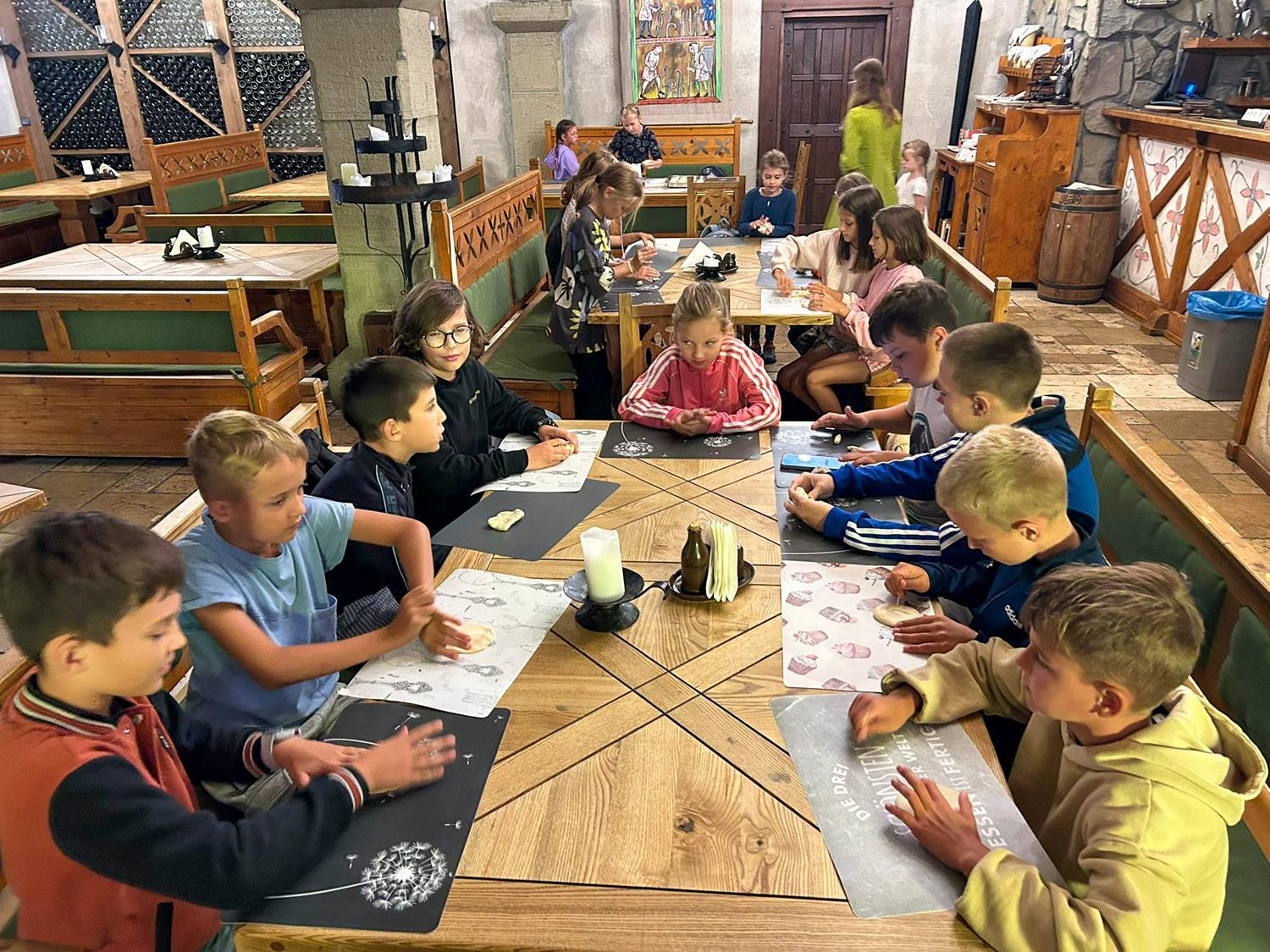 Dzieci upiekły tradycyjne chlebki i poznały średniowieczne stroje dworskie, a także uczyły się dworskich tańców i strzelały z łuku.