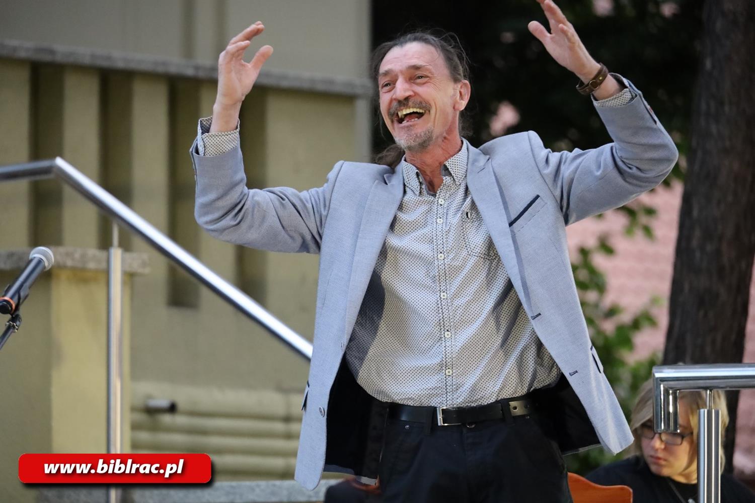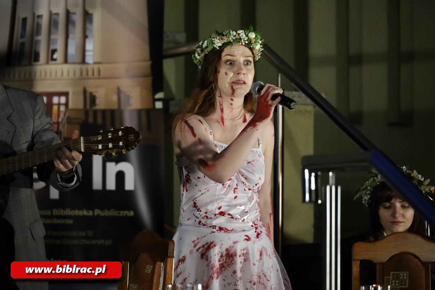 W piątkowy wieczór 22 sierpnia odbyło się ostatnie w tym sezonie spotkanie z cyklu „Teatr na schodach” organizowanego przez Miejską i Powiatową Bibliotekę Publiczną w Raciborzu. Wydarzenie cieszyło się ogromnym zainteresowaniem – publiczność wypełniła przestrzeń przed biblioteką do ostatniego miejsca. Tym razem gościem wystąpił Teatr Wodzisławskiej Ulicy, który zaprezentował spektakl zatytułowany „Z zeszytów do polskiego”.